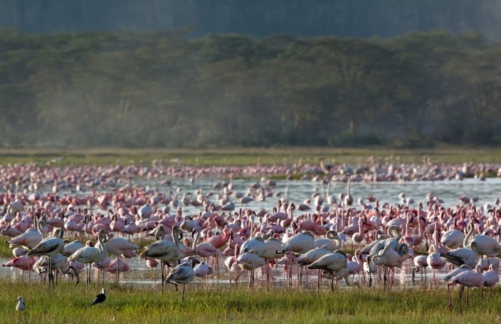 Tras el desayuno, regreso al Aberdare Country Club para reencontrarse con nuestro chofer/guía. Continuación del viaje hacia el suroeste, con una parada en Nyahururu para contemplar las Cataratas Thompson, una caída de agua de más de 70 metros. Llegada al Parque Nacional del Lago Nakuru, declarado santuario de rinocerontes y famoso por su gran población de flamencos, pelícanos y otras aves acuáticas. Almuerzo en el Sarova Lion Hill Lodge, con vistas al lago. Por la tarde, safari por el parque donde se pueden avistar rinocerontes blancos y negros, leones, antílopes, babuinos y gran diversidad de aves. Cena boma con danzas y alojamiento.